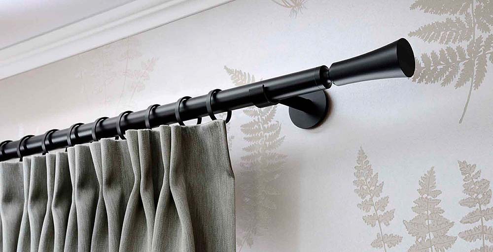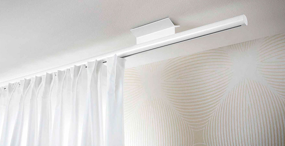 The range comprises a large variety of tracks and poles of different styles for ceiling and wall fitting.