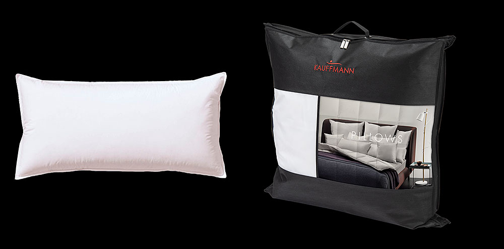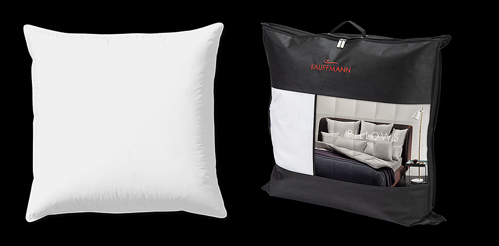 We sell down / feather pillows from Sanders / Kauffman in standard German sizes and normally stock two different qualities, one slightly stronger with a mixture os 85% feathers and 15% downs, and the second slightly softer with 70% feathers and 30% downs. Both types are available in 80 x 40 cm and 80 x 80 cm. We also sell the neck supporting pillow PRO-PIL-O.