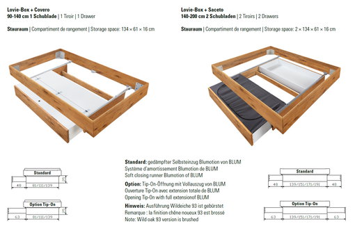 If there is a need for storage, there are two options. First there is the Lovie-Box with one respectively two drawers: