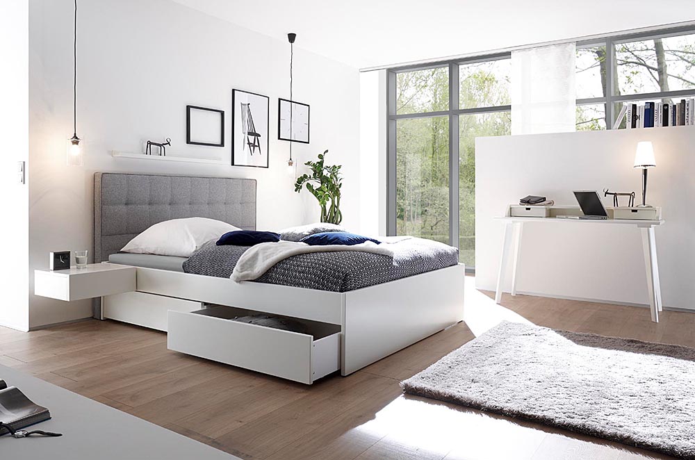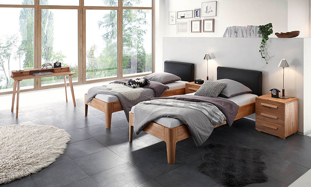 All beds shown here are only some samples among numerous combinations possible in this series. Bedside tables, chests of drawers, benches and other accessories are also available.