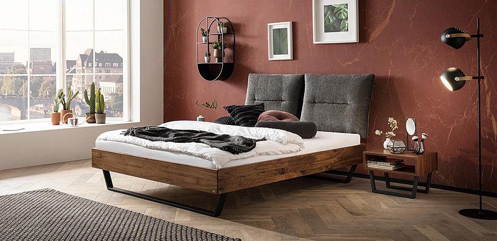Bedframe Premium 23 with metal skids Indus and headboard Varus with cushion Ravo