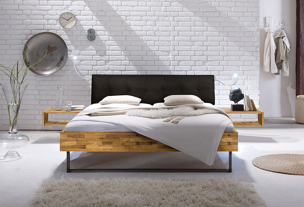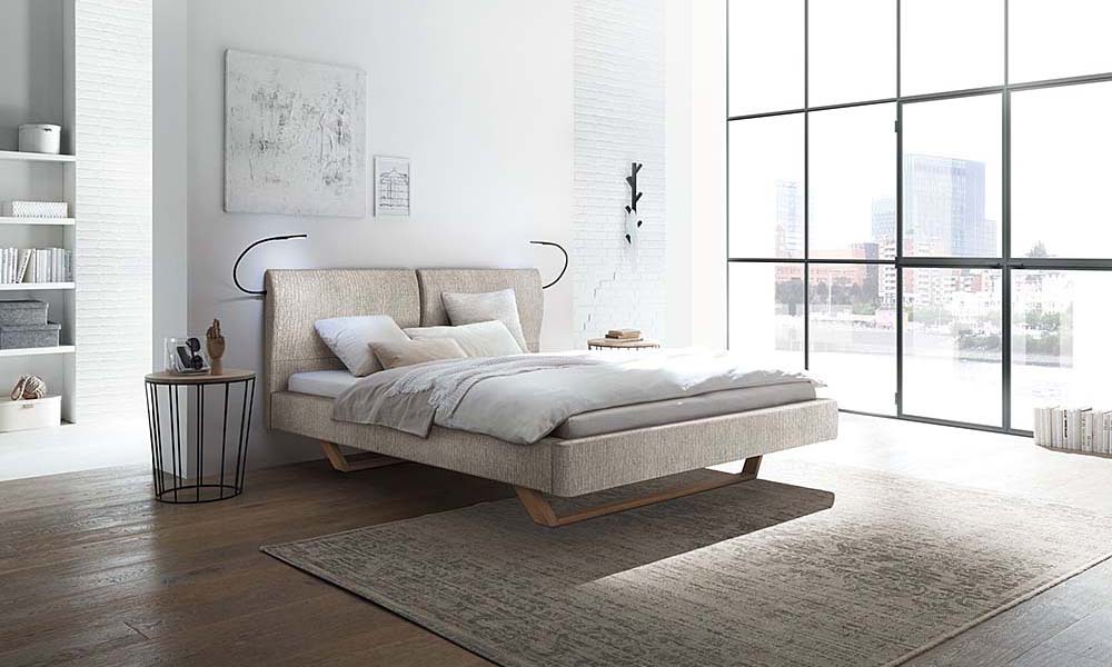 Bedframe Modul 18 with wooden skids Skido and headboard Varus with cushion Ravo