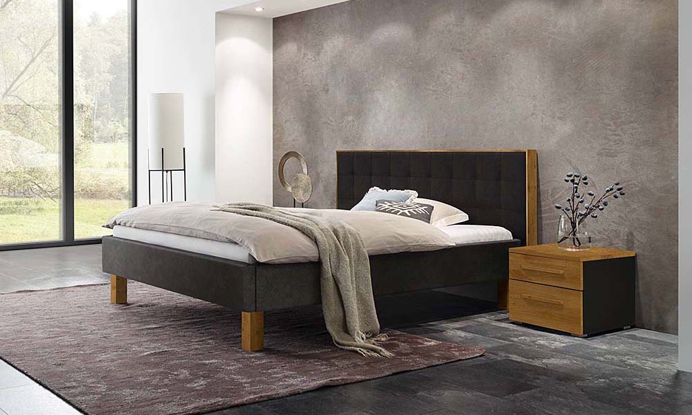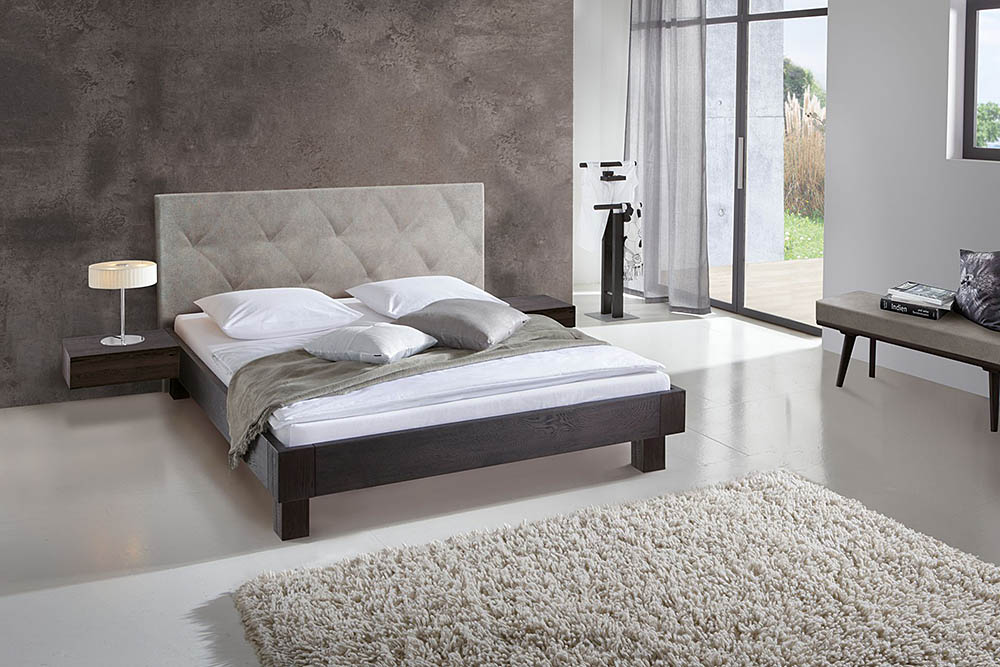 Bedframe Bloc 16 with wooden legs Stabil and headboard Inca with cushion Nakio