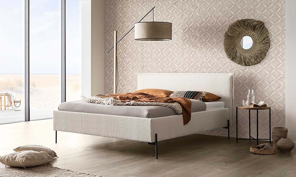Upholstered beds in three different possible composition schemes with various bedframe heights, a choice between numerous fabrics, and some pre-composed beds with reduced delivery time.