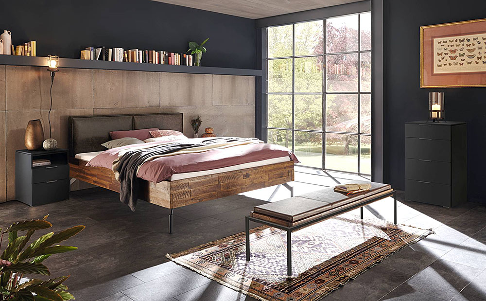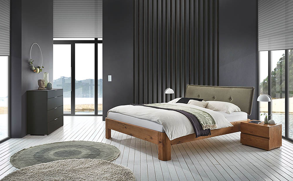 All beds shown here are only some samples among numerous possibilities offered be the various series. Bedside tables, chests of drawers, benches and other accessories are also available.