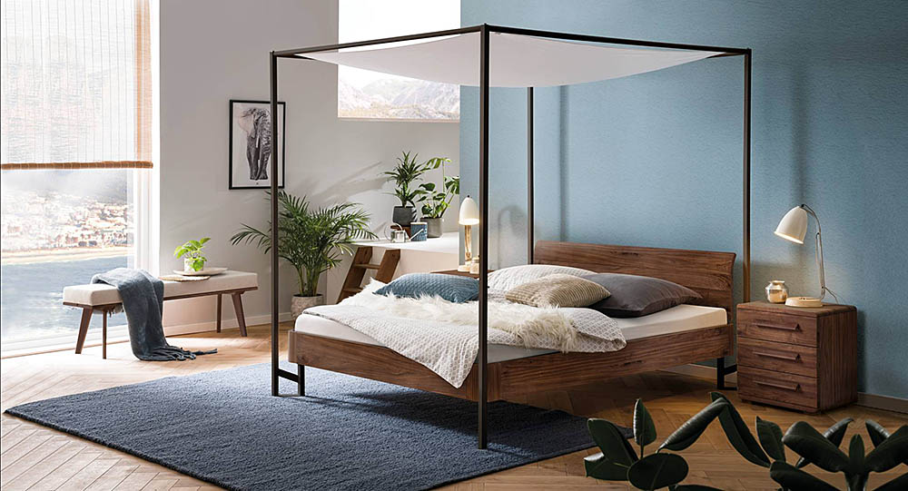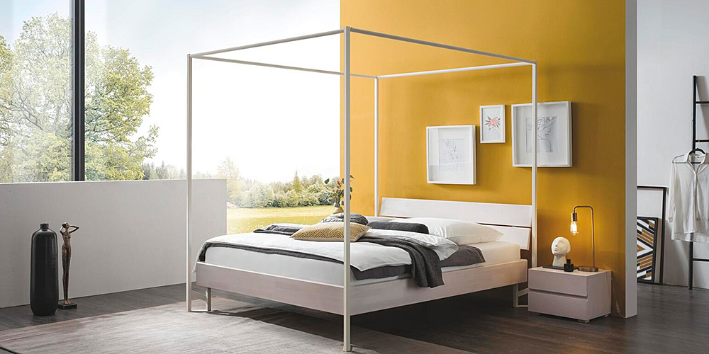Bedframe Syma 18 with 4-poster-structure Cielo and headboard Vola