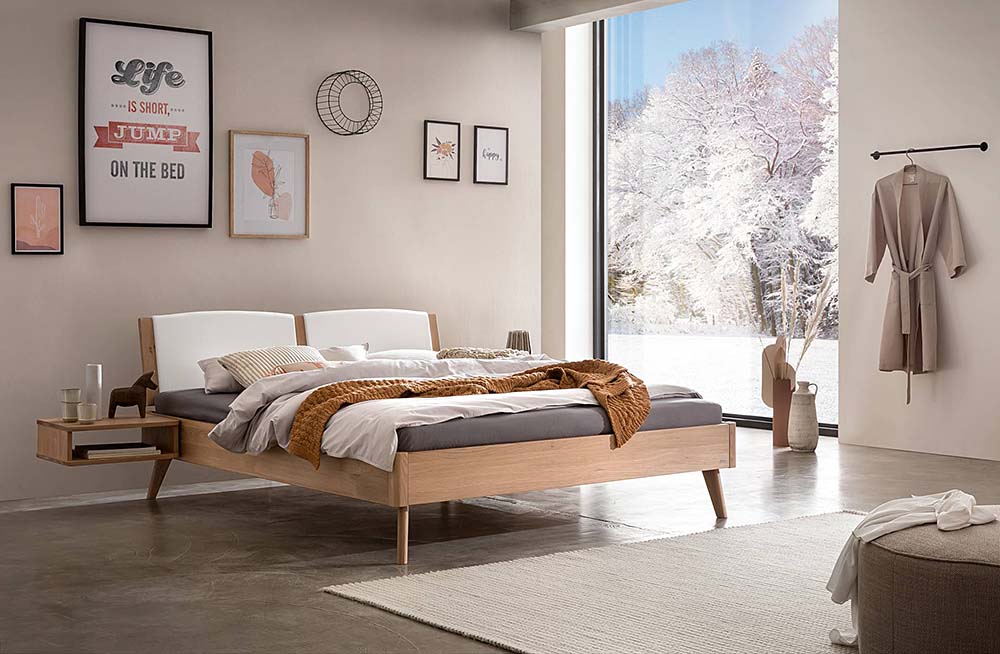 Bedframe Syma 18 with wooden legs Ronda and wall panel Umbia L