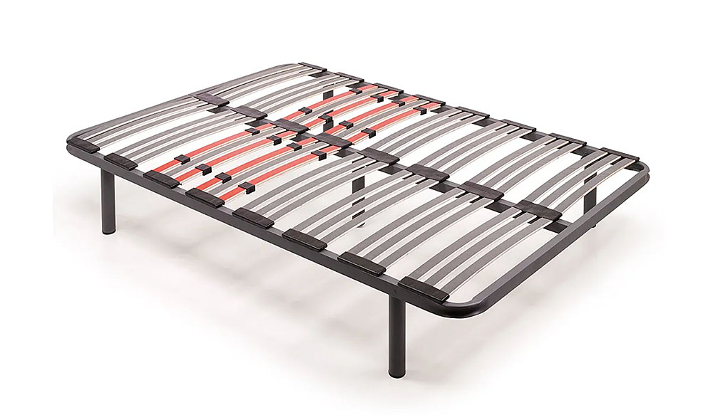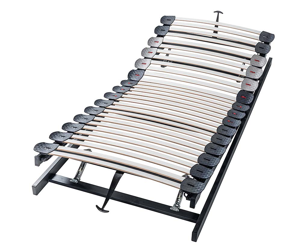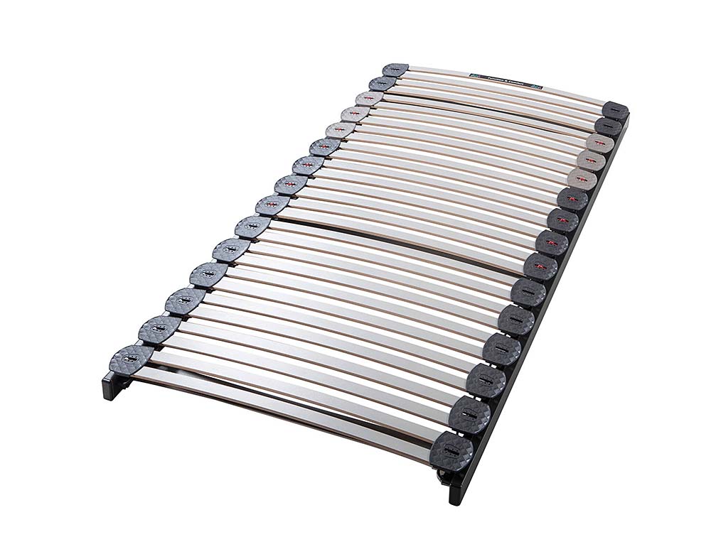 A slatted frame should always match the mattress. The point elasticity of a mattress can be reinforced by a highly adaptable slatted frame whereas a rigid base can diminish its effect. This especially applies to mattresses made of foam and cold foam, but also latex. Good memory foam mattresses which mostly consist of a memory foam layer of at least 6 to 8 cm on top of a more rigid foam base are not affected to that extent. Mattresses with a thinner layer of memory foam cannot really be considered as memory foam mattress. Pocket springs mattresses with a thickness of nealy 30 cm and more, like our spanish models, do not need a highly adaptable base and in most cases can be user with simple slatted frames.