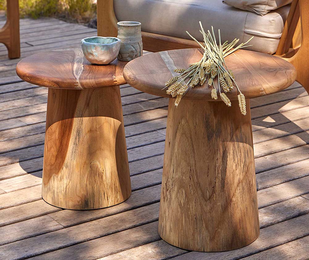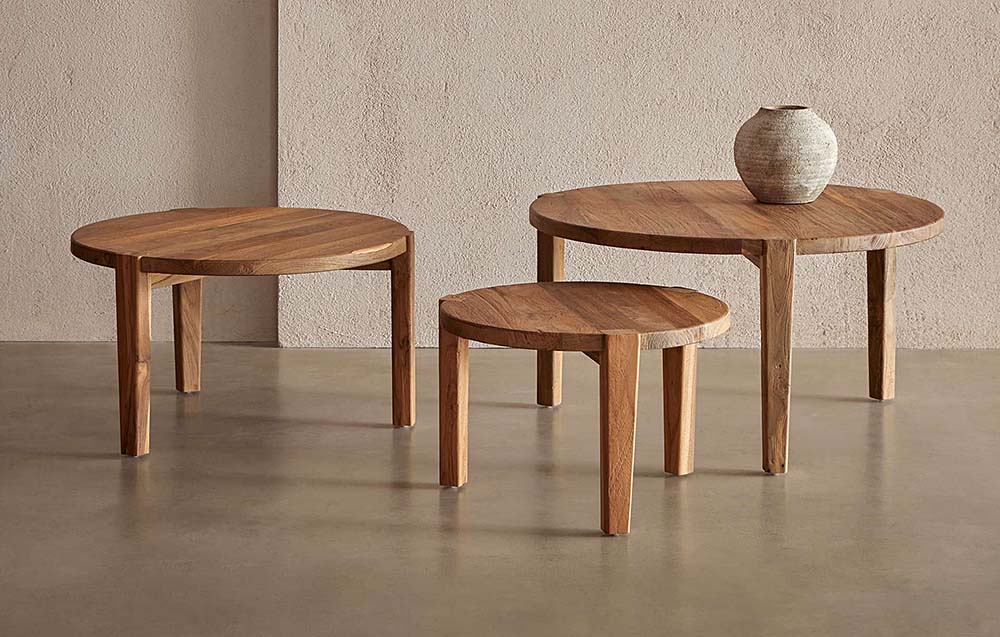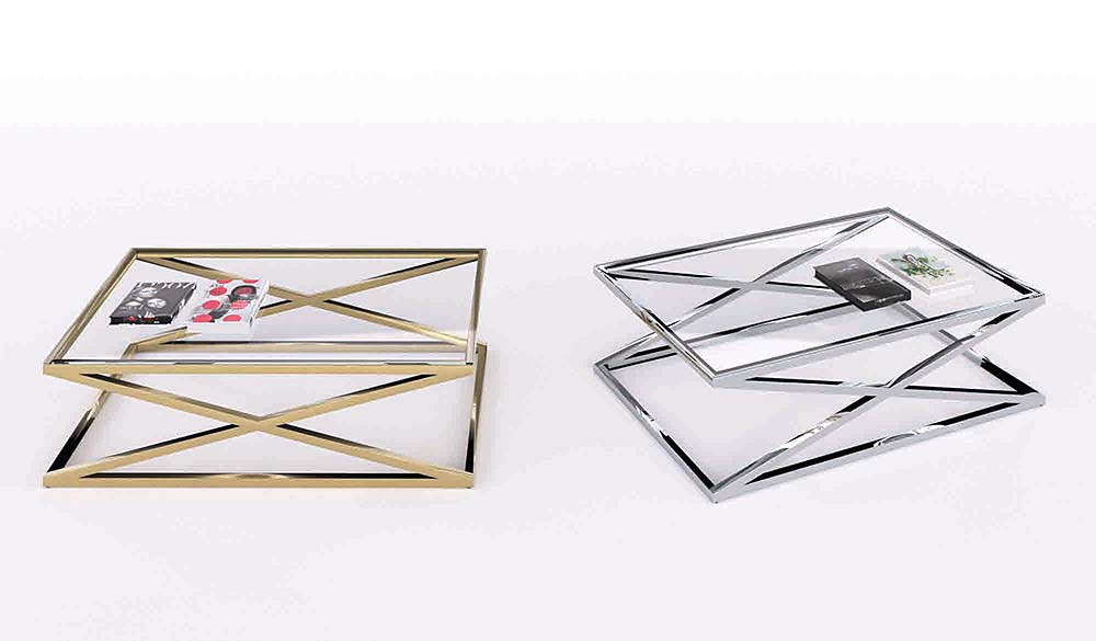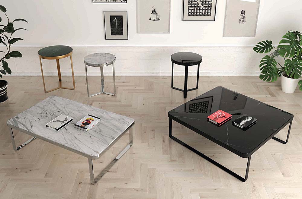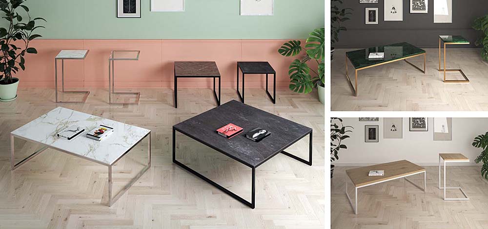 Altinox offers a big range of modern table which can be made from stainless steel, polished or brushed, as well as from lacquered iron. They can also be made in nearly all possible sizes. Coffee tables made of solid wood from Exportjunk and some wood or iron tables form Expormim complete the collection.