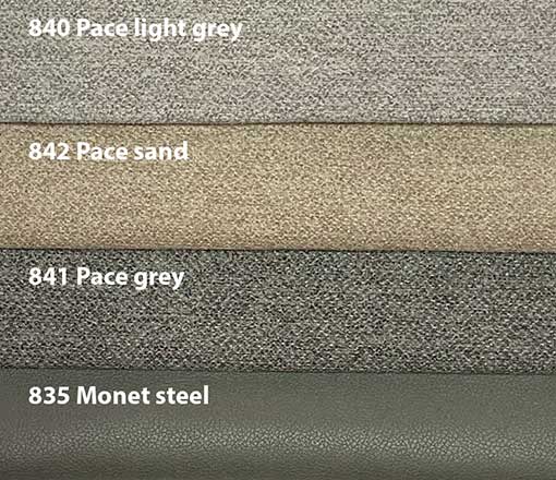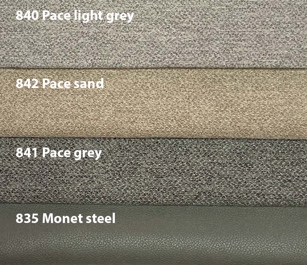Stoffbezogene Teile sind in folgenden Stoffen und Farben möglich: