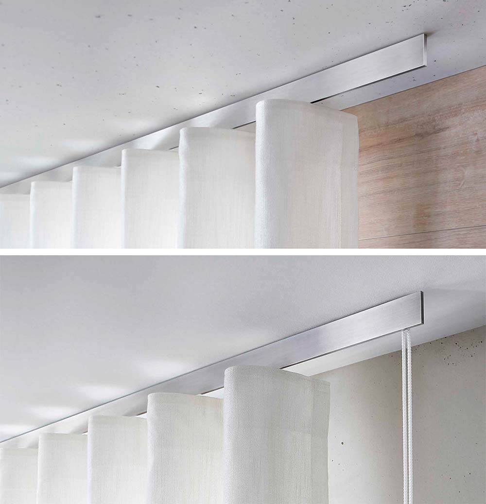 Im Prinzip kann man zwar einen Wellenvorhang an fast jeder Schiene mit Innenlaufsystem anbringen aber um den Wellenvorhang optisch noch besser ins Szene zu setzen, empfehlen wir das hochwertige Wellenvorhangsystem und die speziell dafür entworfenen Schienen des deutschen Herstellers Interstil.