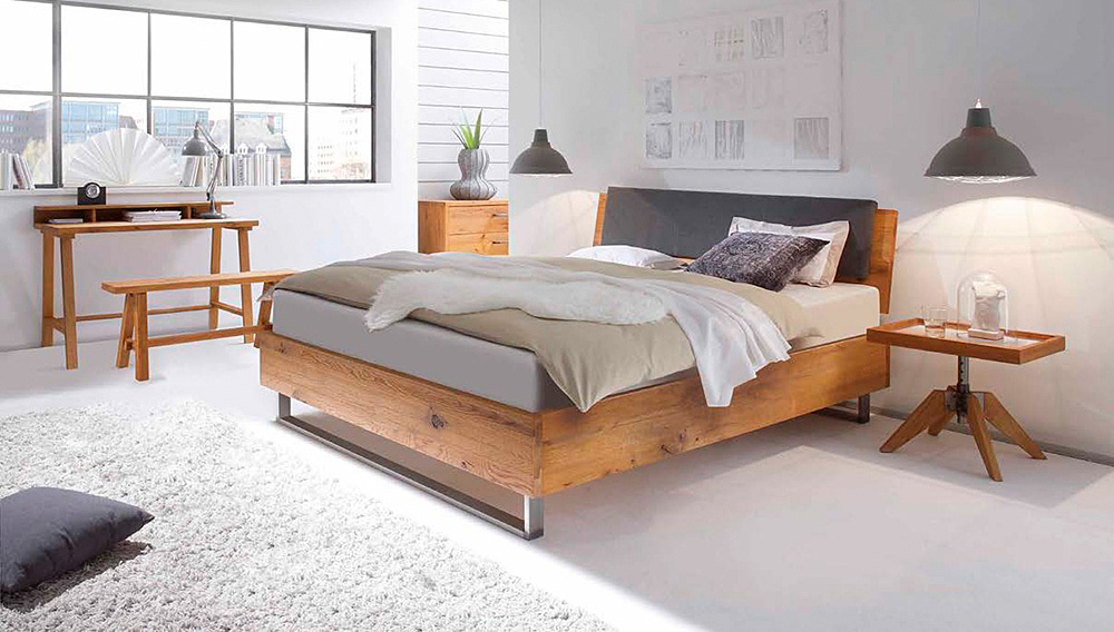 Die hier gezeigten Betten sind lediglich einige Beispiele aus den vielen Möglichkeiten, die sich in den verschiedenen Serien zusammenstellen lassen. Nachttische, Kommoden und weitere Accessoires lassen sich aus den Massivholzserien dazu kombinieren.