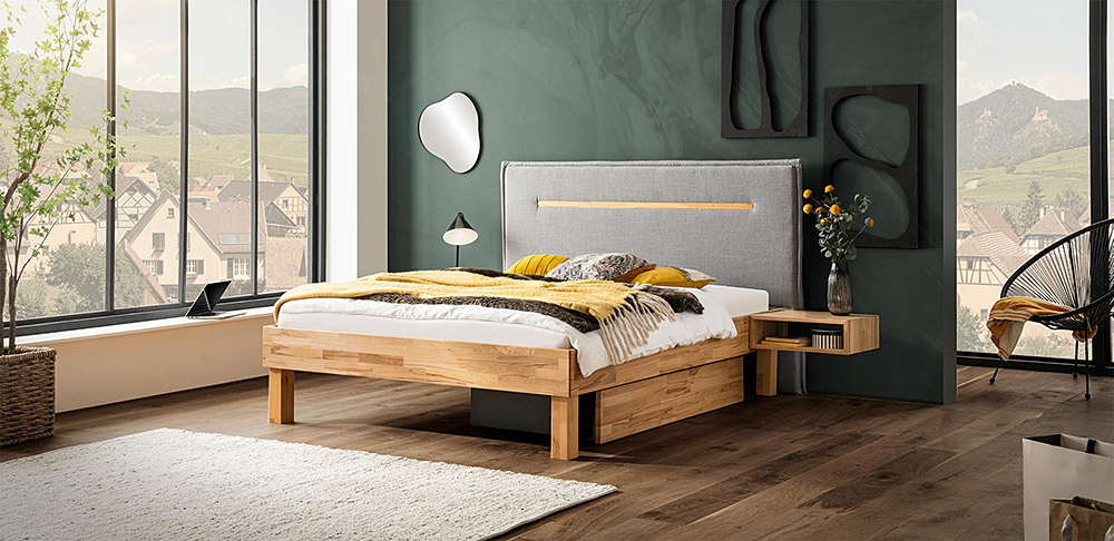 Bettgestell Bellisimo mit Schubladen und Kopfteil Vola in Kernbuche natur, geölt