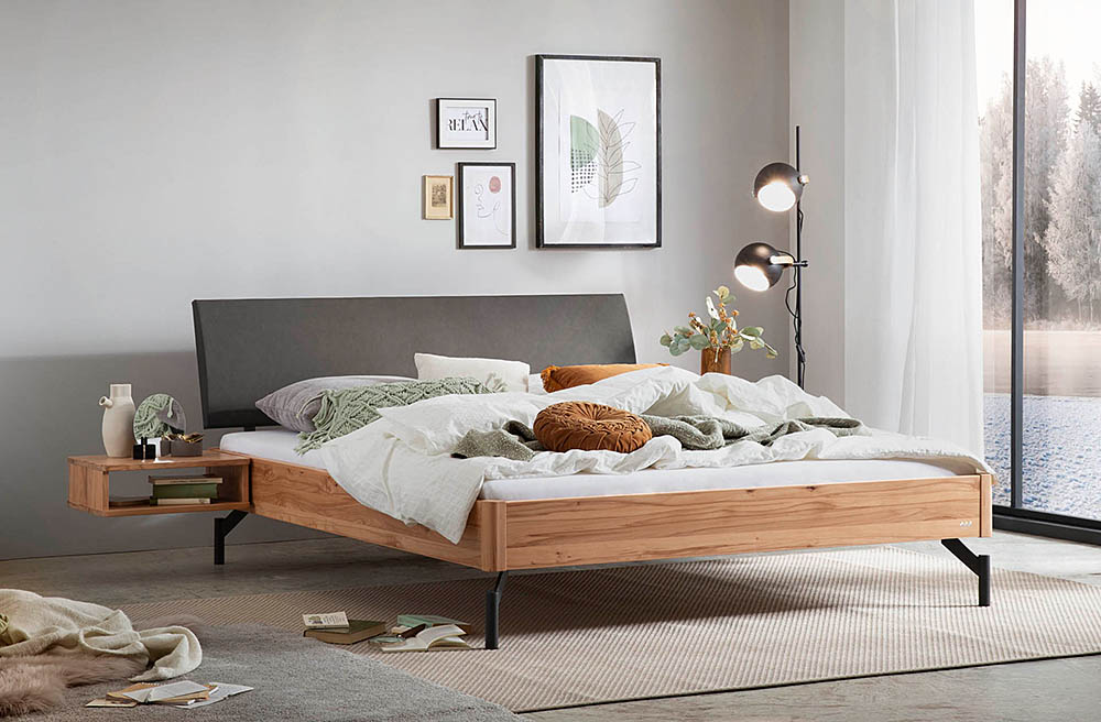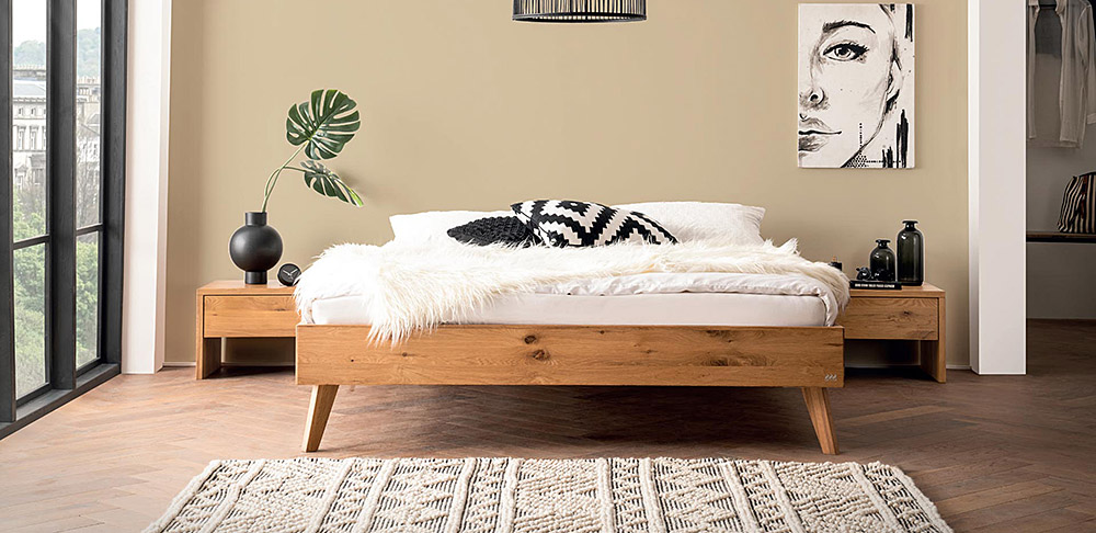 Rahmen Bergamo 4S mit Holzfüssen Tunca und Kopfteil Pella in Kernbuche natur, geölt