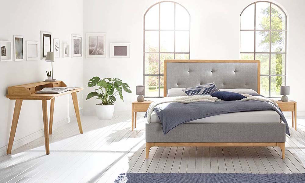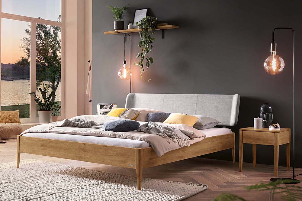 Rahmen Pulciano 23 mit Holzfüssen Lana und Kopfteil Grace in Eiche bright, geölt