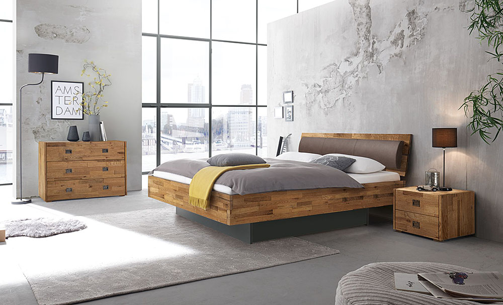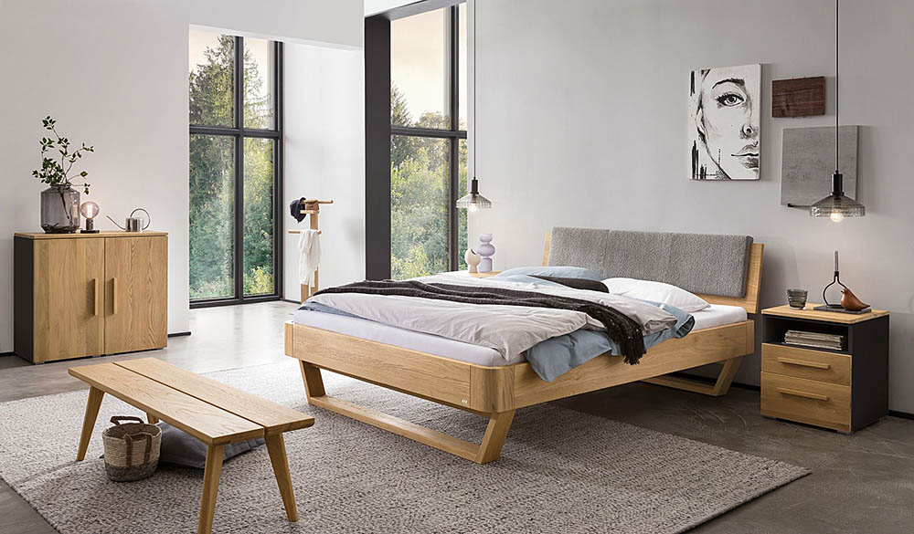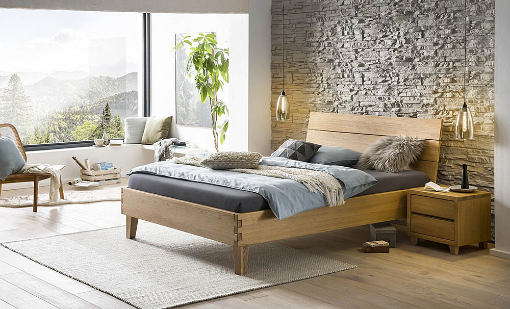 Rahmen Cadro 23 mit Kopfteil Natura L in Wildeiche natur, gebürstet, geölt