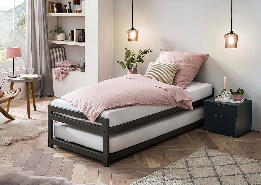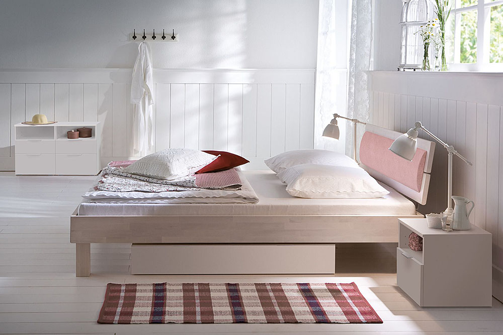 In vielen Serien gibt es die Möglichkeit mit dem Container Practico oder der Lovie-Schubladen-Box Stauraum unter dem Bett zu schaffen. Wer es romantisch mag, der kann die Füsse durch das Himmelbettgestell Cielo mit Dach und Vorhängen ersetzen.