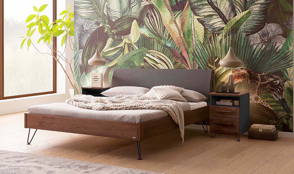 Rahmen Pulciano 23 mit Holzfüssen Conora und Kopfteil Onda in Nussbaum, geölt