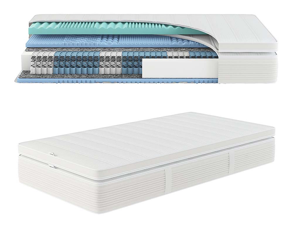 7-Zonen Taschenfederkern mit 1000 Federn pro Liegefläche (100x200), Formpolster und Watergel Topper