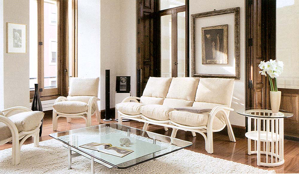 Selbstverständlich sind alle abgebildeten Modelle in einer Vielzahl von Stoffen und Farben erhältlich, ebenso die wie Rattangestelle in verschiedenen Farben möglich sind.